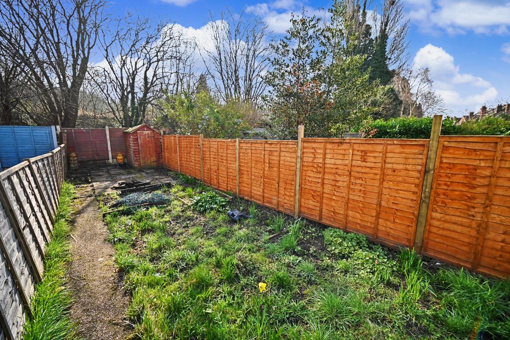 Rear Garden: Enclosed with lawn, garden shed and surrounding fencing and side passageway to front elevation.