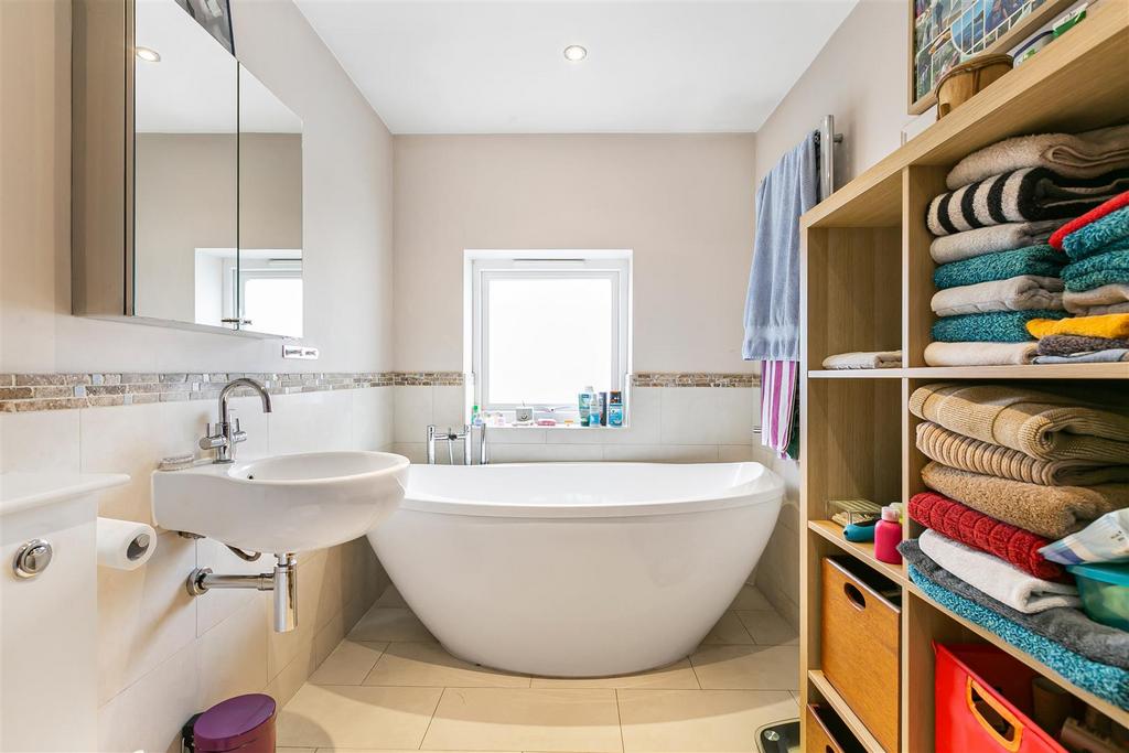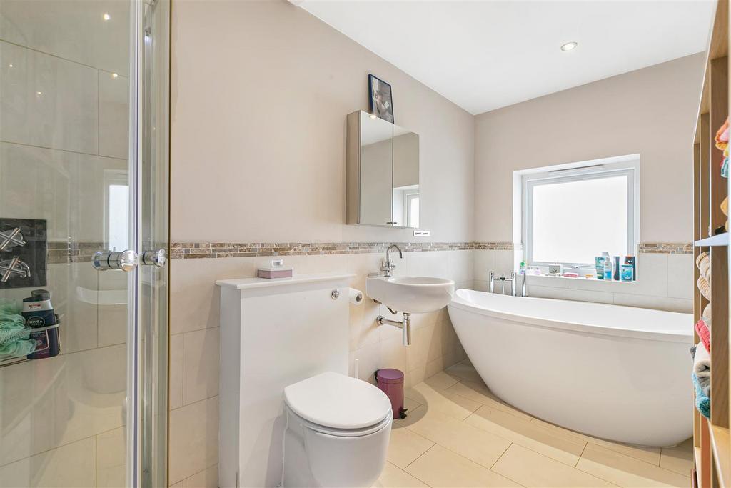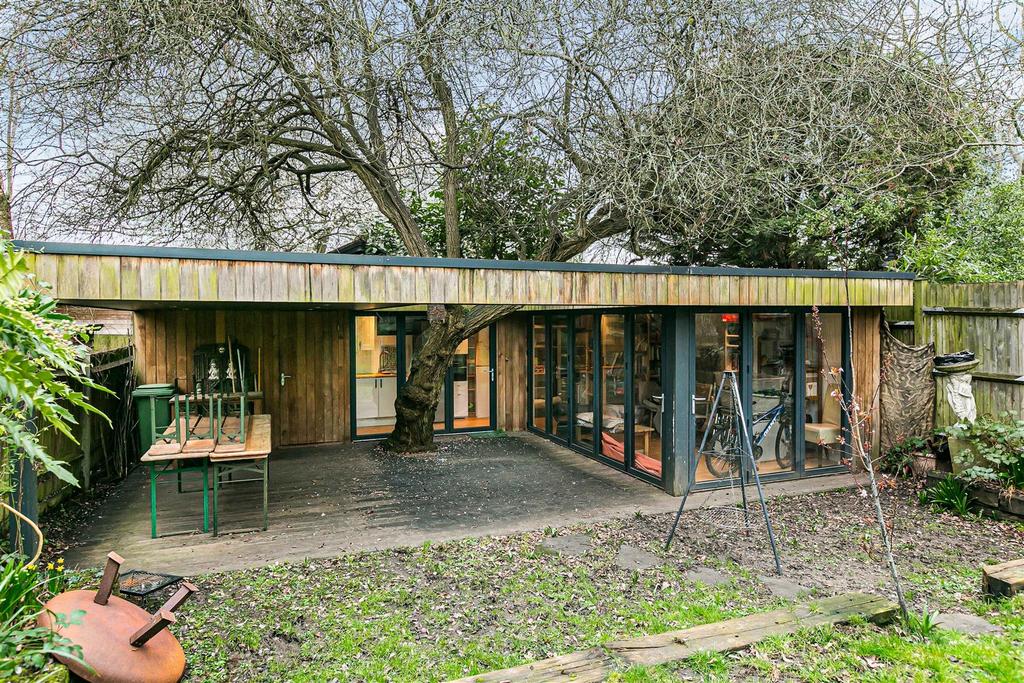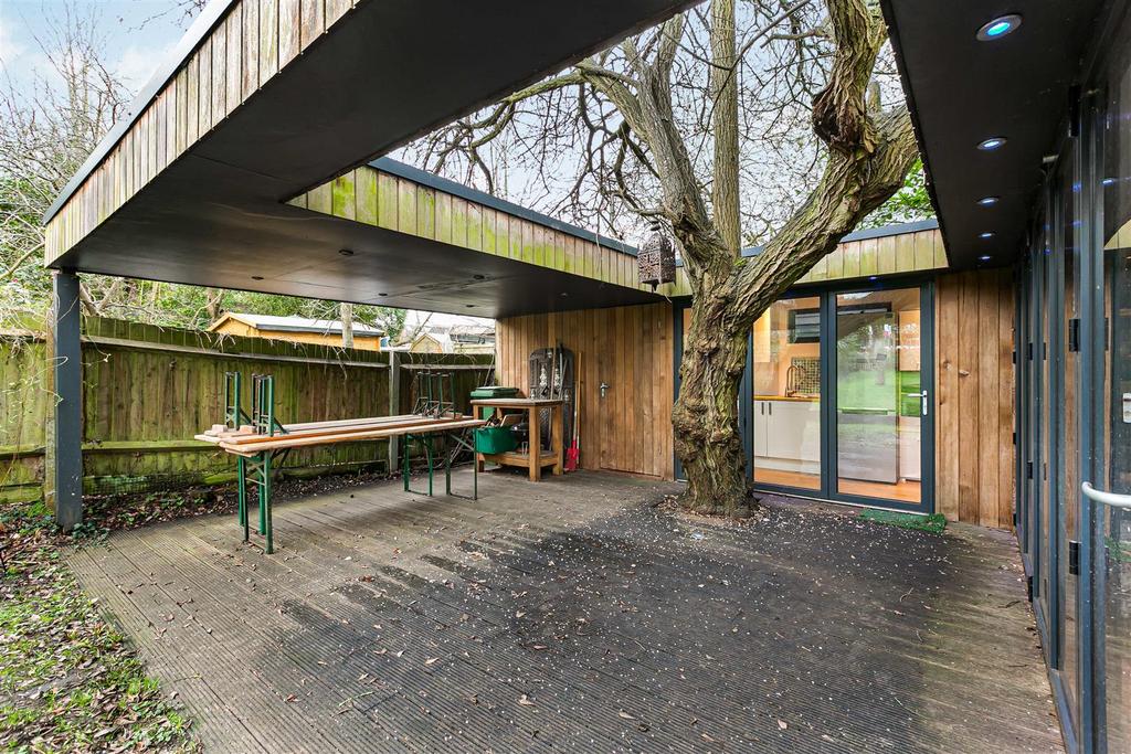 The property boasts three bath/shower rooms and a convenient downstairs WC, ensuring ample facilities for family and guests alike. The westerly aspect rear garden is a delightful feature, providing a sunlit outdoor space perfect for relaxation or play. Additionally, the large outbuilding offers versatile options for use, whether as a workshop, studio, or extra storage.