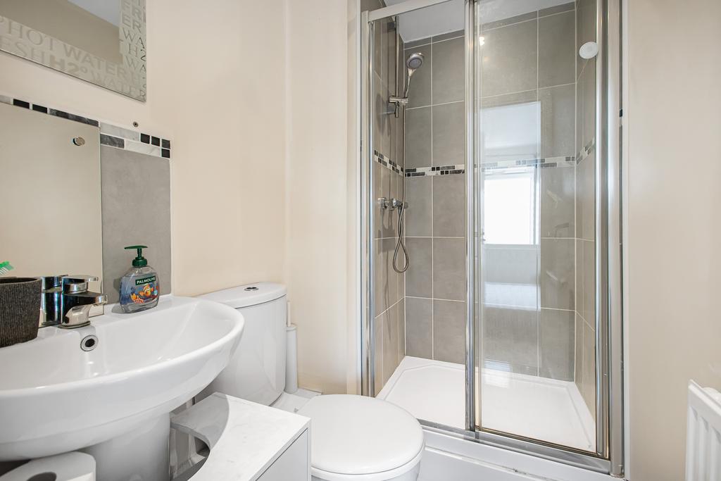 Upstairs, the main bedroom features its own ensuite bathroom and a private balcony—an ideal retreat to enjoy your morning coffee. Two further well-proportioned bedrooms and a contemporary family bathroom offer great flexibility for growing families or those working from home.