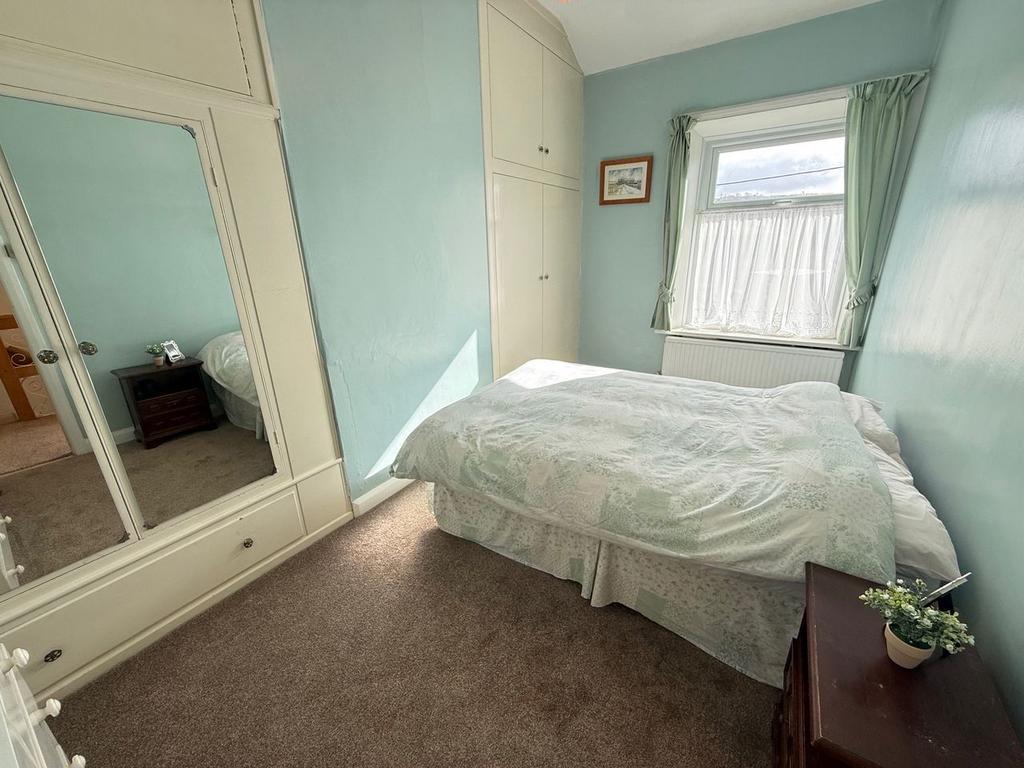 With open fire grate, tiled fireplace and matching hearth and double radiator.