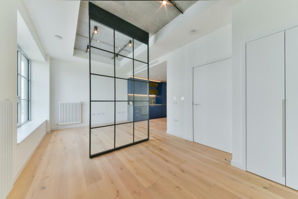 Welcome to this stylish suite apartment in the iconic and vibrant Goodluck Hope development in E14. Just a short walk from the River Thames, this apartment boasts a modern open-plan kitchen and living area, with a smart divider creating a cozy sleeping space. The sleek, contemporary bathroom features bespoke brass faucets, adding a luxurious touch.