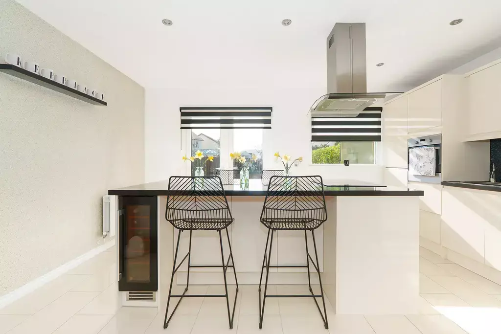Beautifully presented throughout, the home offers spacious, light and airy accommodation. The current owners have undertaken significant upgrades, including the installation of an extensive and attractive block-paved driveway, a landscaped rear garden, a luxury kitchen with a large island, and bespoke fitted office furniture.