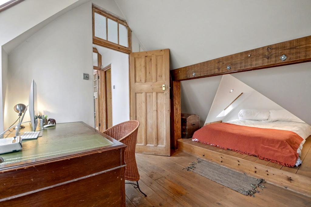 A rare opportunity to acquire a truly unique and really special semi detached house set back from Swains Lane with lovely peaceful views to the front and rear. This impressive home enjoys characterful living space including a charming open plan sitting room which overlooks the pretty west facing garden. The house has a cosy 'cottagey' feel with wood flooring and exposed ceiling beams and the period detail is seamlessly enhanced by clever design features including a central staircase. There are four bedrooms, two bathrooms and lots of useful storage space. The property has a large garage which also has space for extra parking in front of it. Highgate Village is nearby and and excellent selection of independent shops, popular cafes, pubs and restaurants are moments away at Swains Lane.