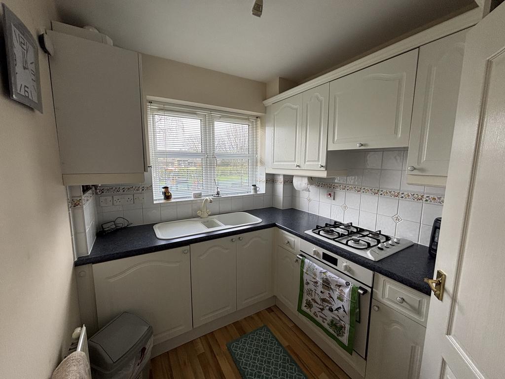 Fitted Kitchen (7'11 x 6'10) With a range of base and wall units, one and a half bowl sink unit with mixer taps, built in oven, hob and hood, double glazed window, central heating radiator and gas fired boiler.