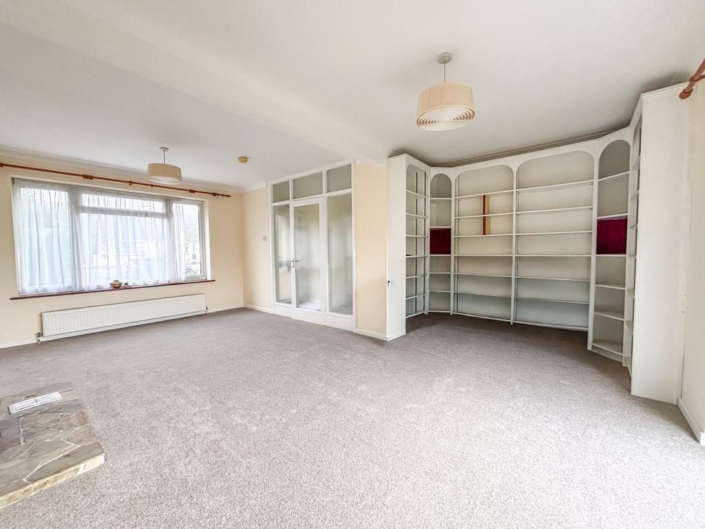 19' 7" x 11' 9" (5.97m x 3.58m) widening into the dining area 15' 9" max with wide glazed sliding doors onto the patio and garden, central stone fireplace with inset gas fire.