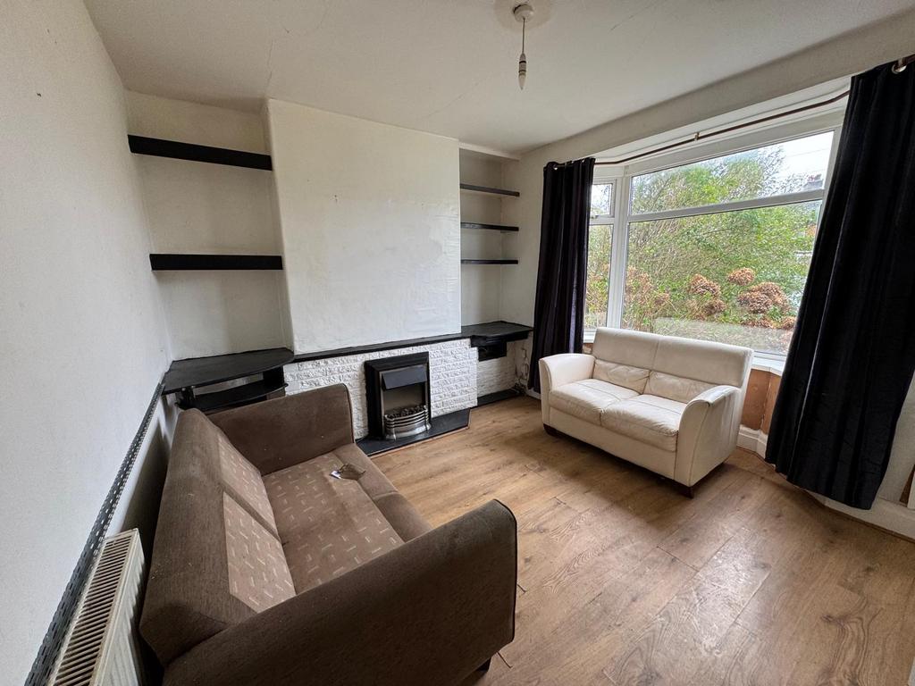 Living flame fire in brick effect surround, uPVC double glazed bay window, Radiator.