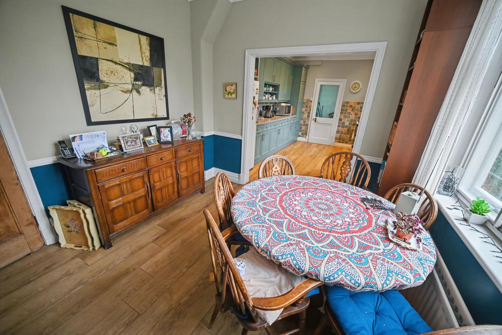 Dining Room: 17’9’’ (5.40m) x 13ft (3.96m) Feature tiled fireplace with matching hearth, wood surround & gas coal fire, two radiators, wall light points, coved ceiling, original wood flooring, double glazed bay window to front and matching full height window to rear with door to garden.
