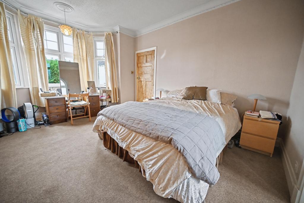 Living Room: 17’1’’ (5.21m) x 15’1’’ (4.59m) Period style black open fireplace with marble hearth, two radiators, period style coved ceiling, wood flooring and PVC double glazed windows to side and matching bay window to front.
