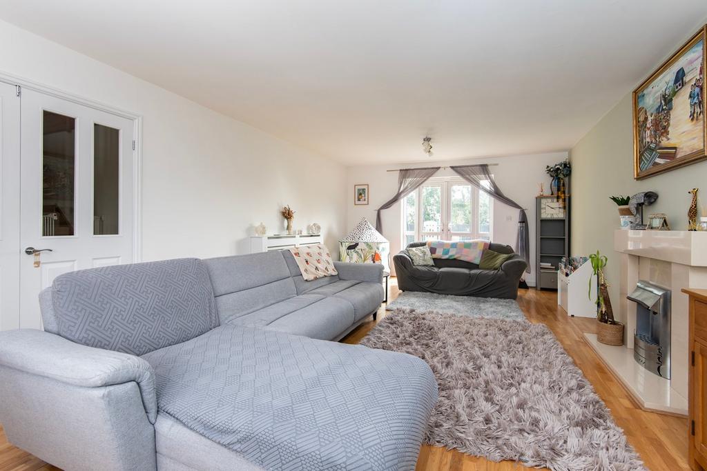 With a bow window to the front aspect, French doors leading to the rear garden, radiator, two ceiling light points, TV aerial point, fireplace with fitted hearth, inset and display surround.
