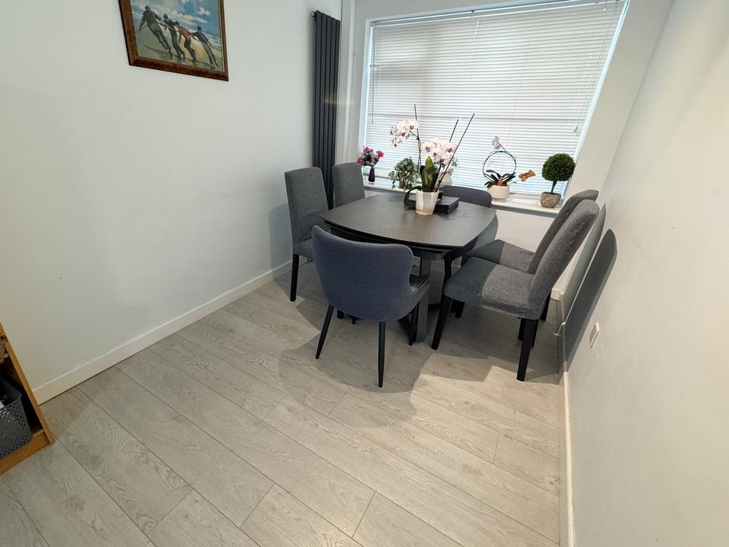 Set slightly back from the road, this home features an open porch leading into a welcoming entrance hall, which includes a practical storage cupboard housing the washing machine and tumble dryer, as well as a downstairs WC. The living/dining room overlooks the enclosed rear garden, creating a bright and inviting space. The modern kitchen is fitted with a range of floor and wall units, with work surfaces along one side, and provides direct access to the rear garden.