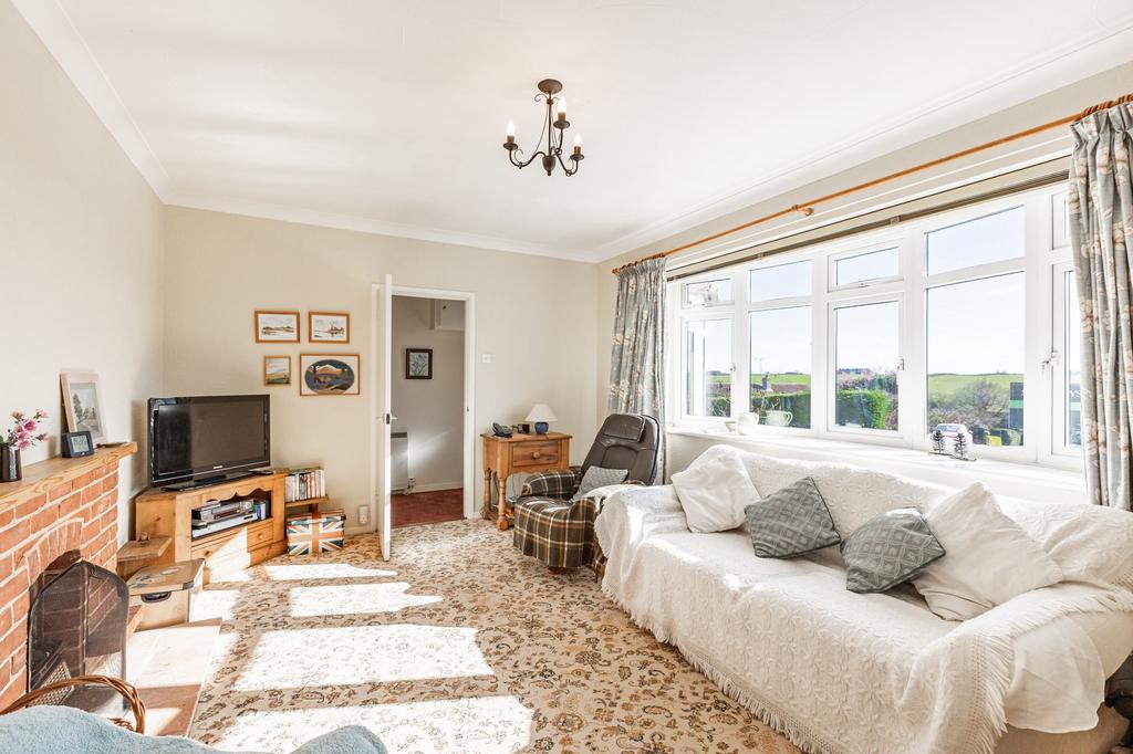 Approaching the property, you are greeted by a glazed entrance porch, which the current owners have added. Although a perfect place to leave your shoes and coats, its real highlight is the field view to the front. From here the hallway leads to two good-sized double bedrooms, a family bathroom with separate shower, and a handy second WC. The sitting room is light and airy with a large front window and a brick open fireplace, a cosy spot to snuggle down to in colder seasons. The kitchen/dining room has been extended to create a sociable cooking and entertaining area that overlooks the rear garden. There is also a handy internal door to the single garage.