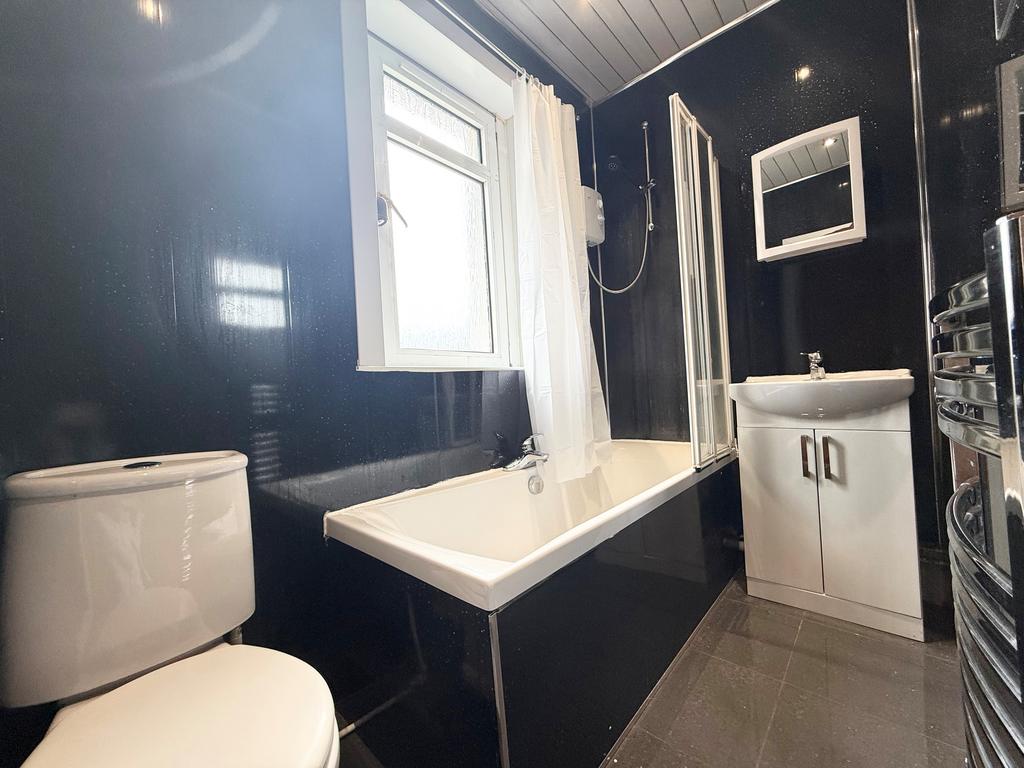 The property features a generous and welcoming living room filled with natural light, along with a modern fitted kitchen complete with appliances. There are three well-proportioned double bedrooms, one of which benefits from wardrobes, and a contemporary family bathroom with a shower over the bath.