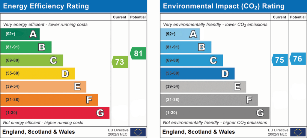 Ascend the staircase from the entrance hall to the first floor landing where there are three generously proportioned double bedrooms. The master bedroom benefits from fitted wardrobes, while bedroom two enjoys a dual aspect allowing plenty of natural light and pleasant views. Serving the bedrooms is a spacious, fully tiled family bathroom fitted with a freestanding bath, separate shower cubicle, WC and wash hand basin, creating a stylish and practical space for the household.