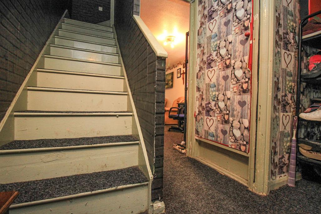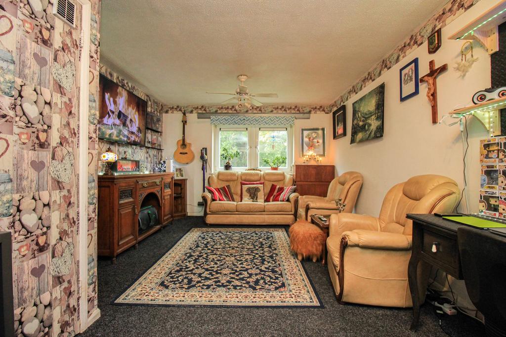 The lounge has a double glazed window to the rear aspect, laid to carpeted flooring and a large under stairs cupboard.