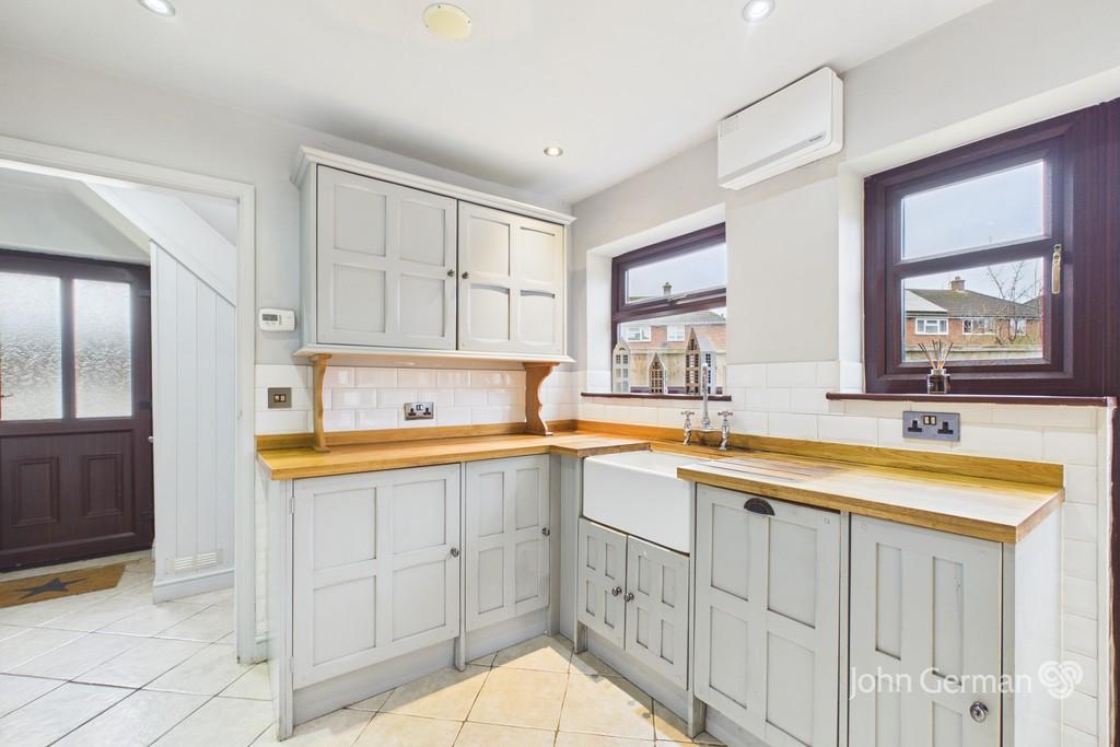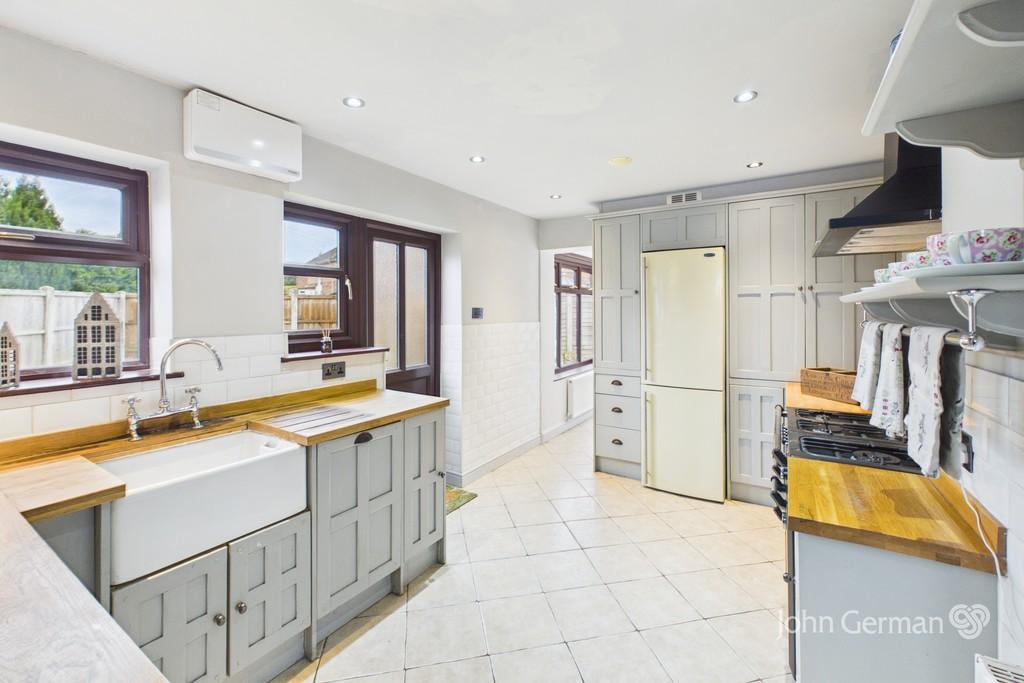 From the dining room, you enter the bright and airy sunroom-a versatile space perfect as a snug, reading area, or additional sitting room. The sunroom connects through to the kitchen and back into the hallway, creating a practical and free-flowing layout throughout the ground floor. The kitchen itself also provides direct access to the garden.