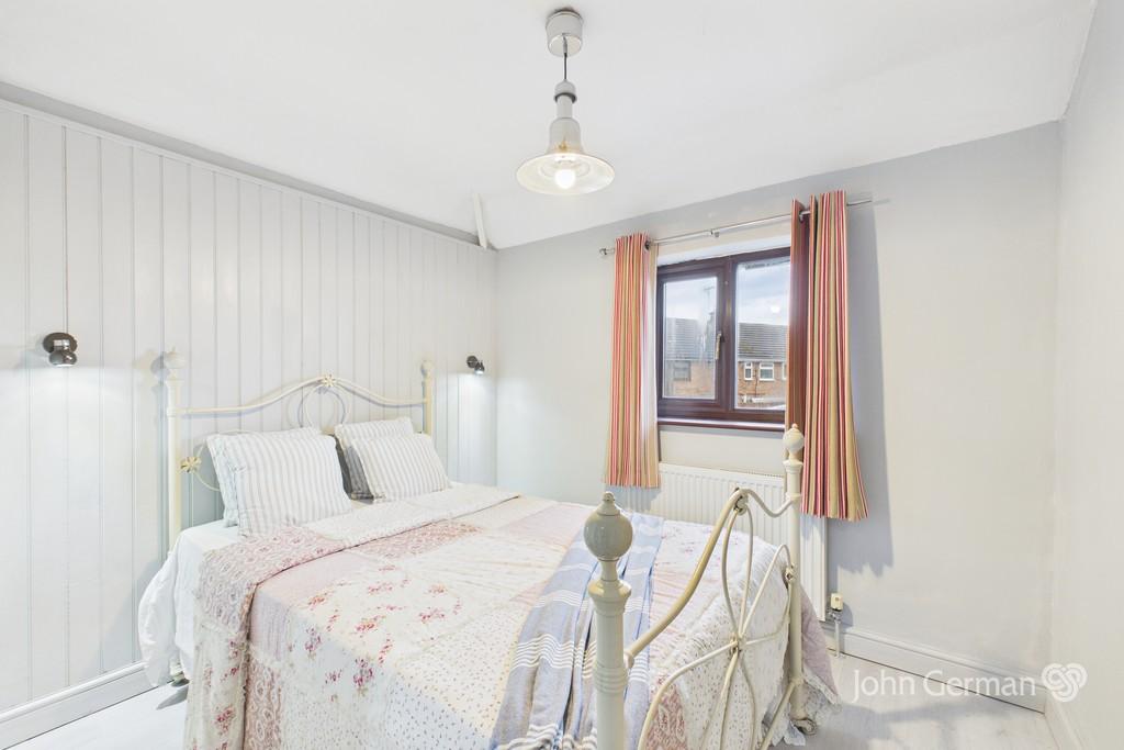 Upstairs, the property offers three well-proportioned bedrooms. The third bedroom is ideal as a single room, study, or hobby space and benefits from a front aspect window and built-in storage. The second bedroom is a comfortable double with a rear aspect window, while the principal bedroom is the largest, providing ample space for a double bed and additional furnishings.