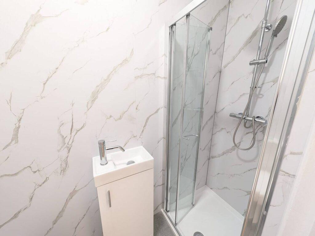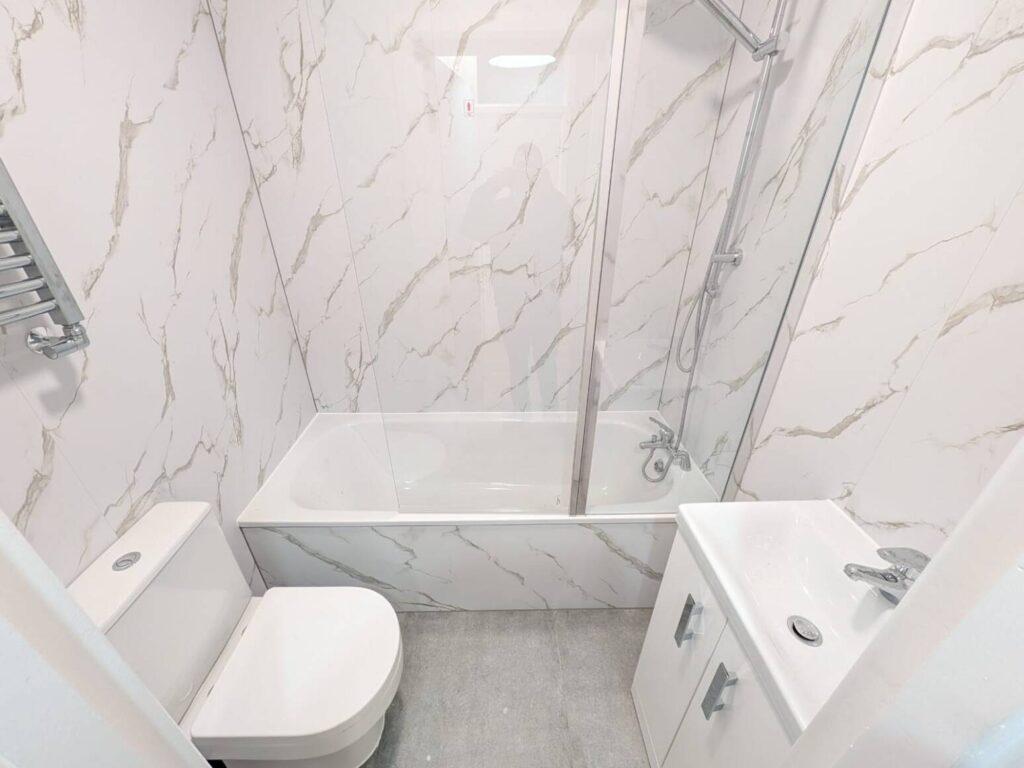 - 2 bathrooms with new marble tiling