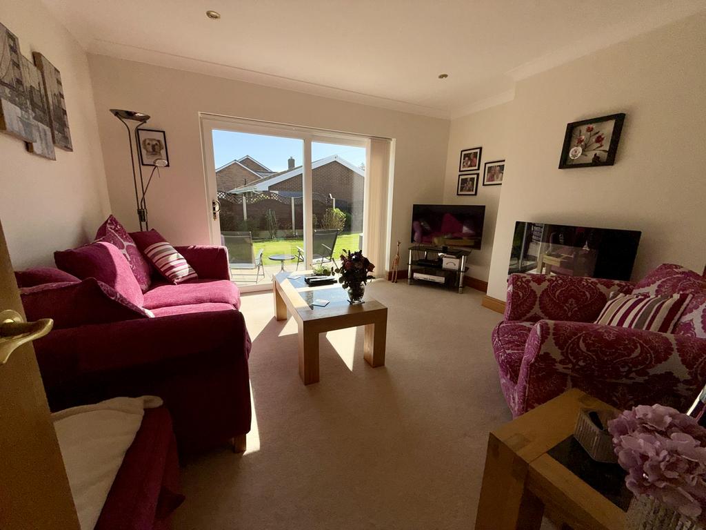 Double glazed patio doors to rear, coved ceiling, inset lighting, alcove cupboard and shelving. Double radiator.
