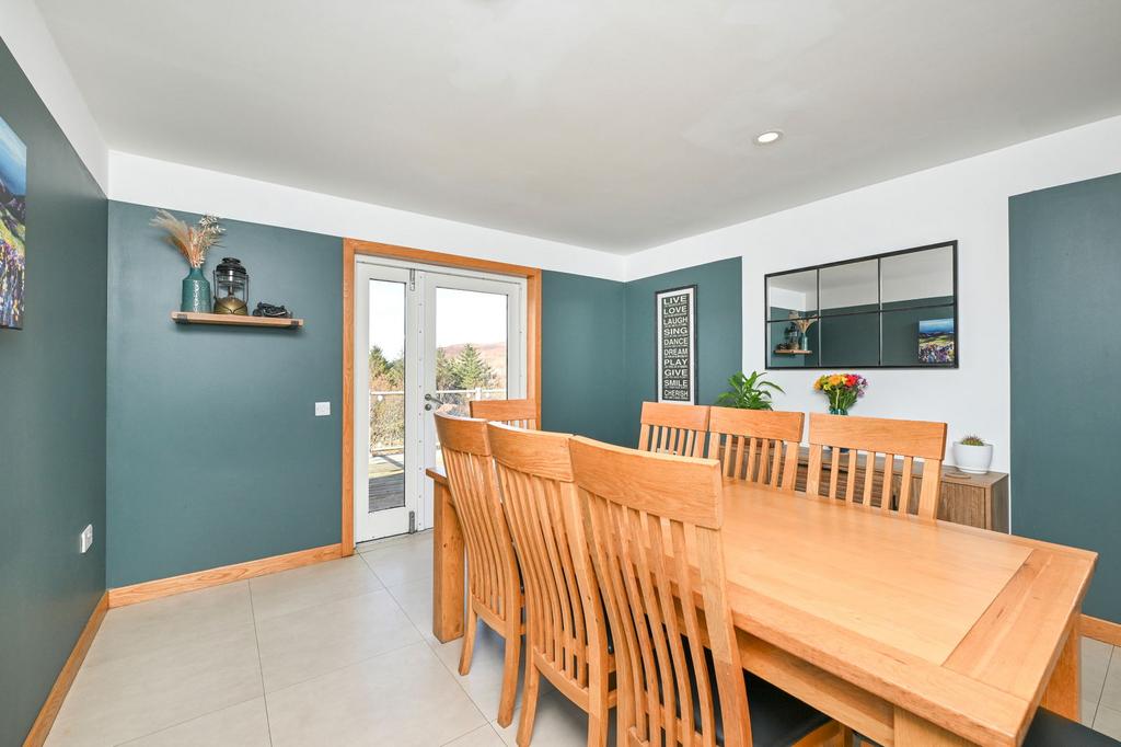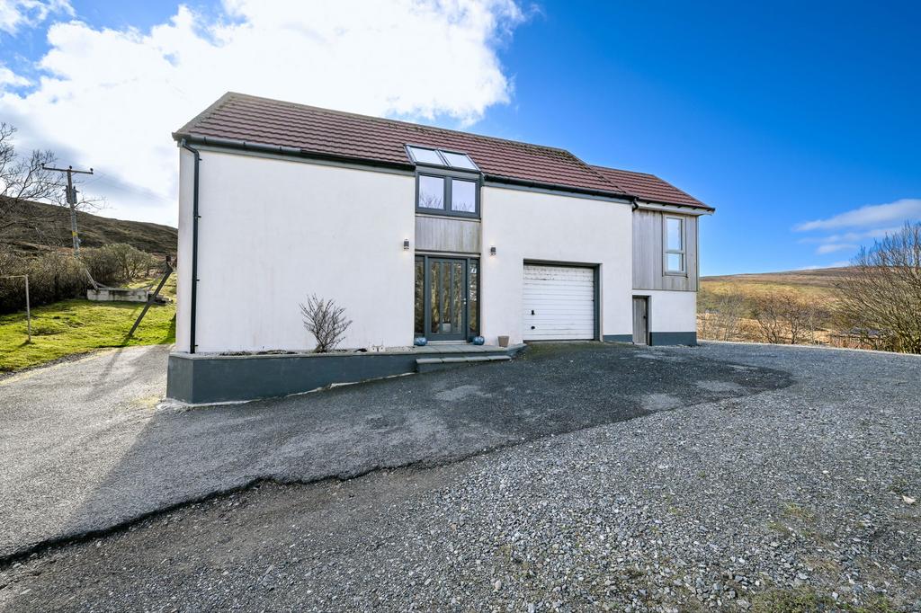 Externally, the home sits on a very generous plot surrounding the dwelling. There is a decked patio with glass-panelled railing, leading out to the well-kept wrap-around gardens with a dry stone feature wall and a garden shed. There is also a large private driveway with ample room for parking.
