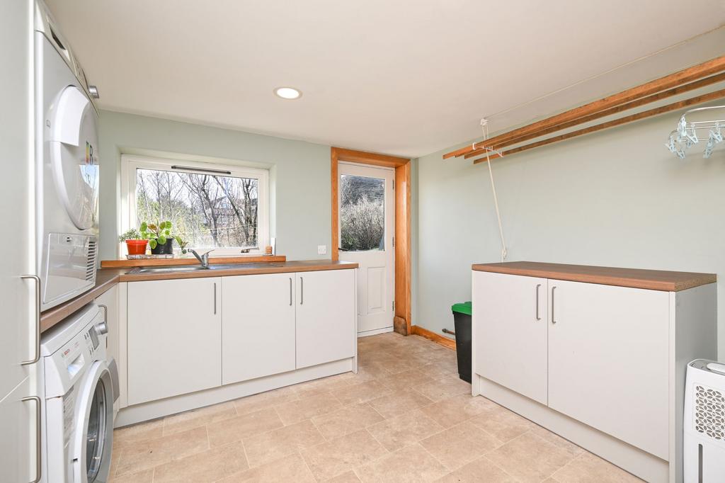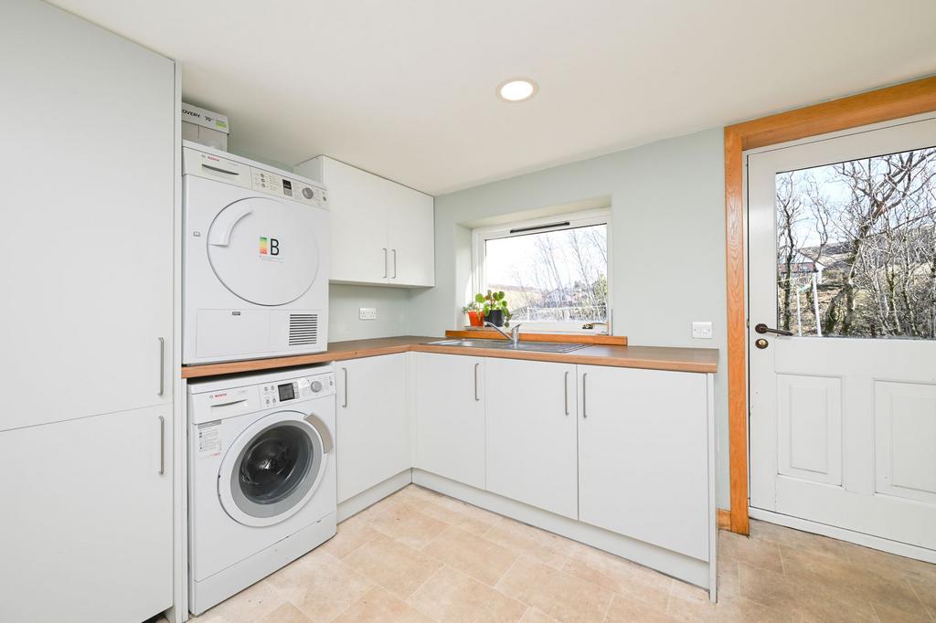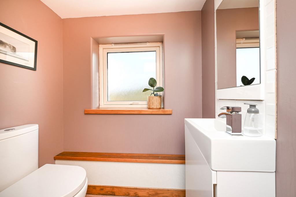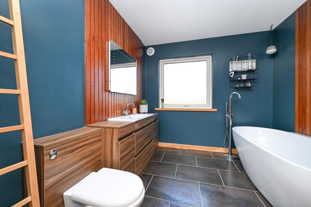 The interior of the home is complete with a substantial fifth bedroom offset from the lounge, a practical utility room, equipped with wall-and base-mounted units and external access, a cloakroom, W.C.