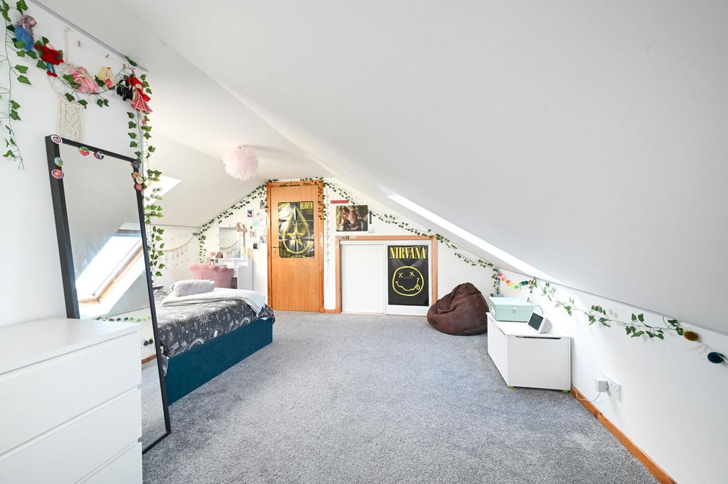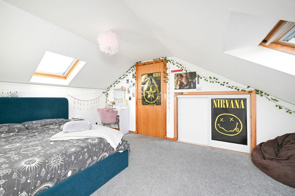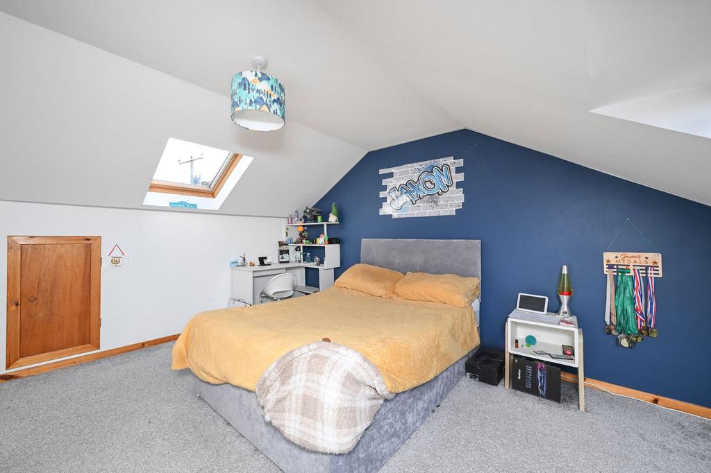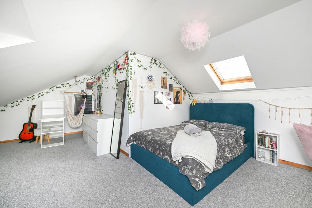 The first floor hosts two further bedrooms, both of which provide excellent floor space, with Velux windows on both sides.