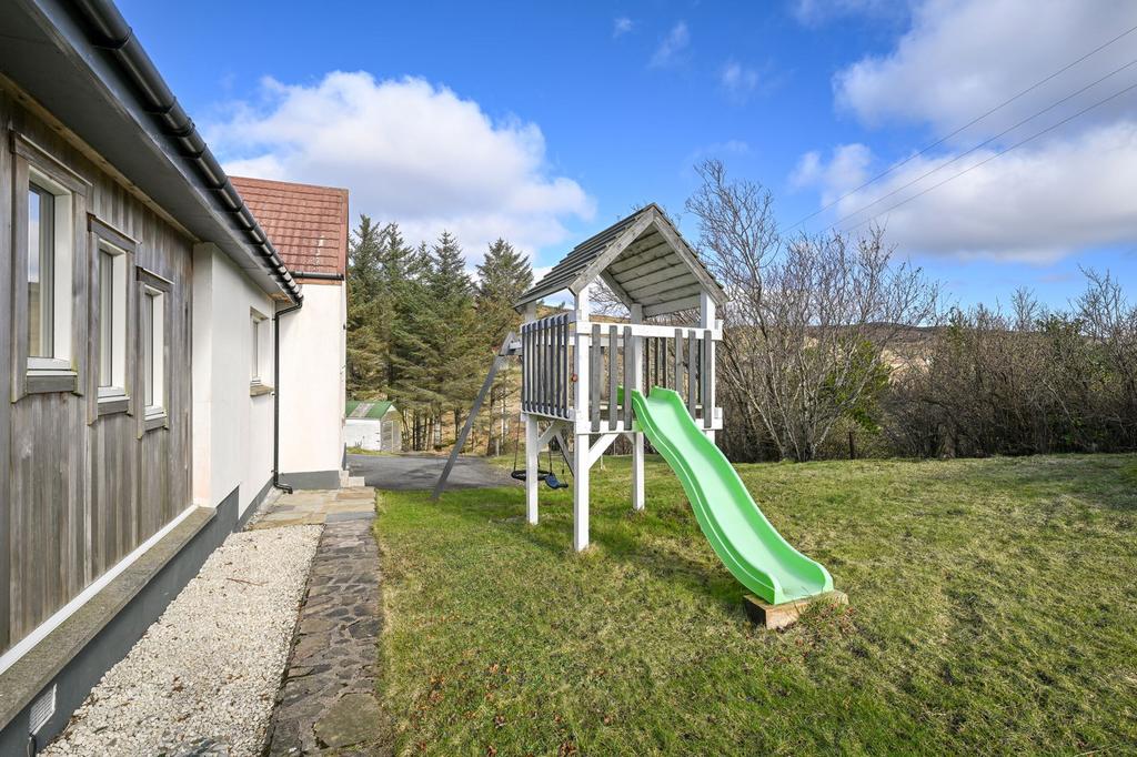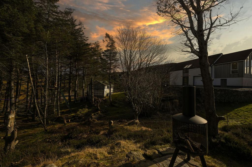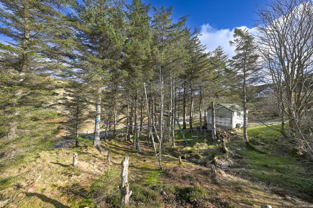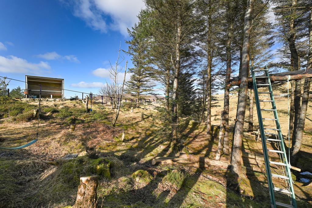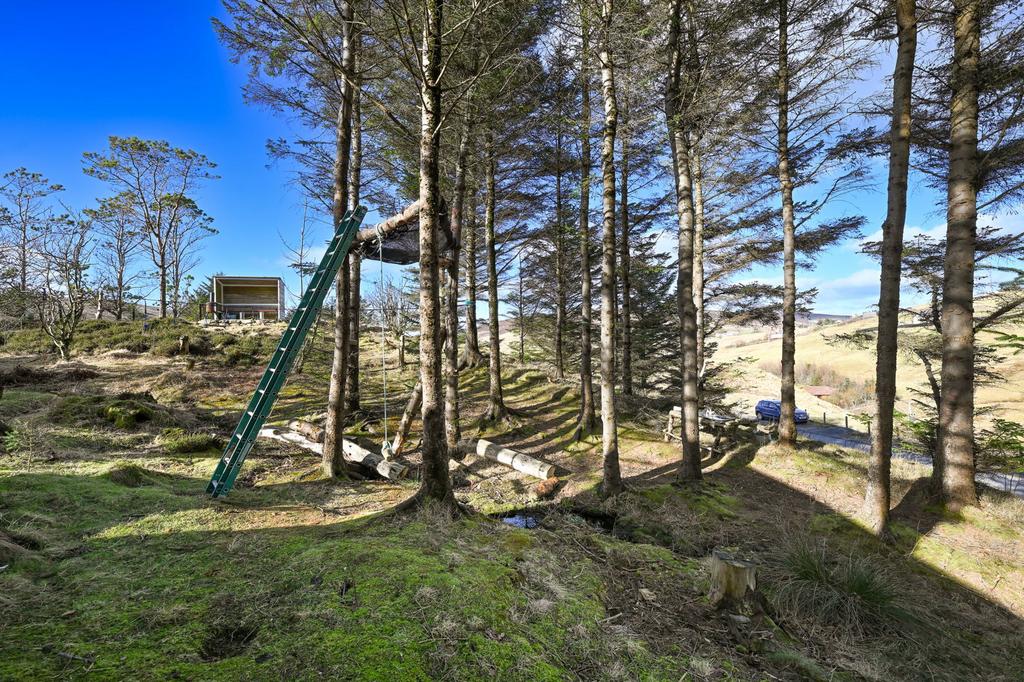 There is mature woodland surrounding the dwelling, with a sheltered seating area and a tree house.