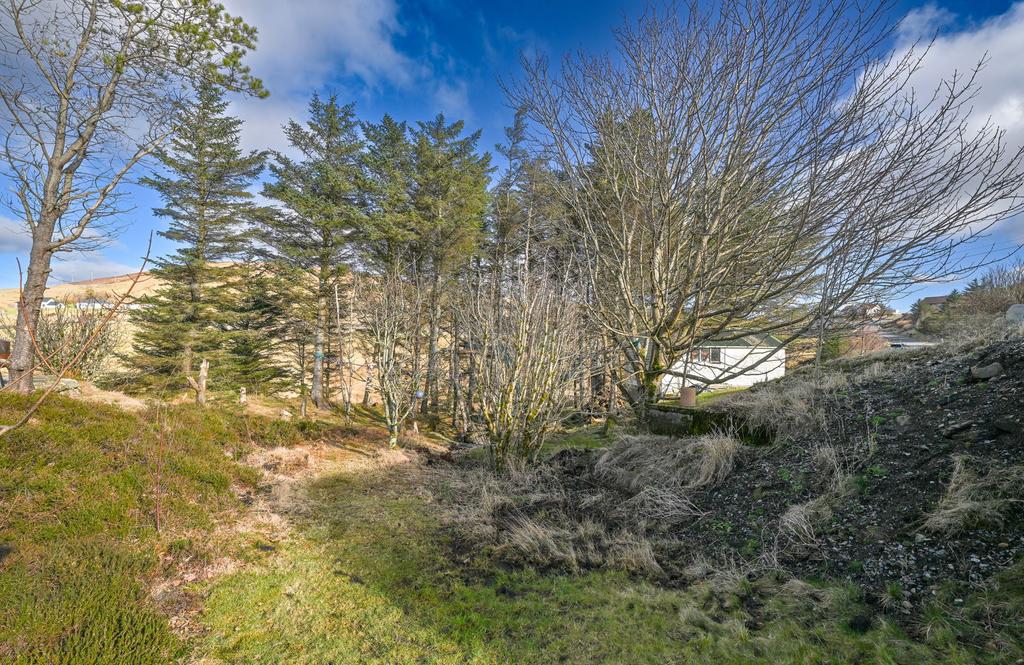 Externally, the home sits on a very substantial plot, including a well-maintained wrap-around garden with a dry stone feature wall, a decked patio, private driveway, large garden shed, and mature woodland surrounding the dwelling.