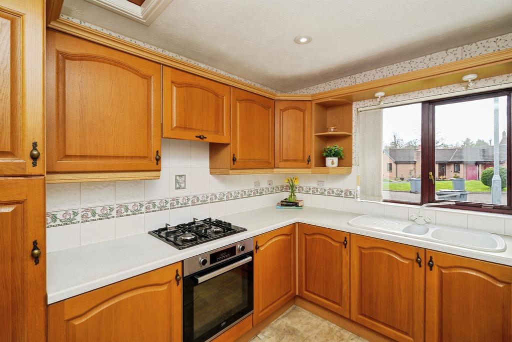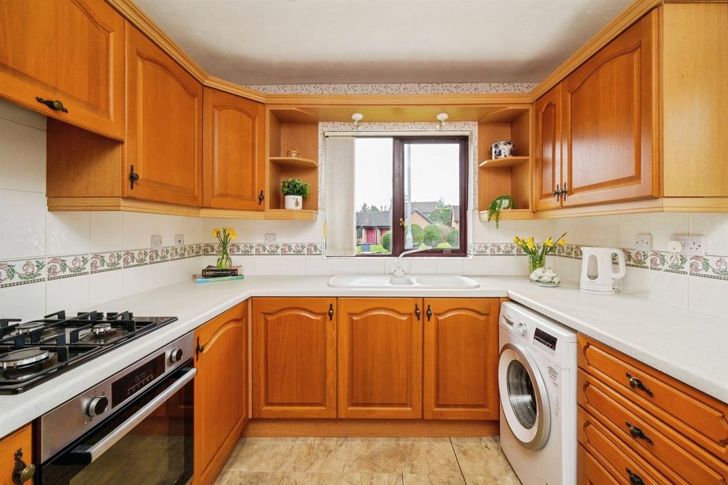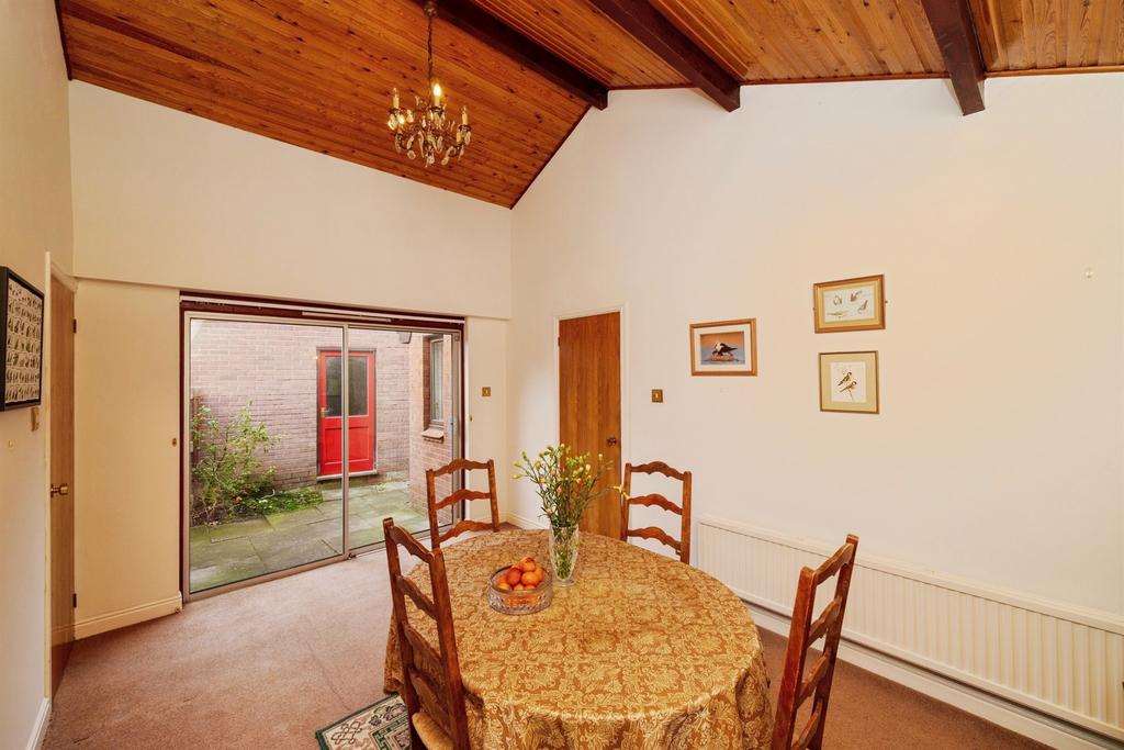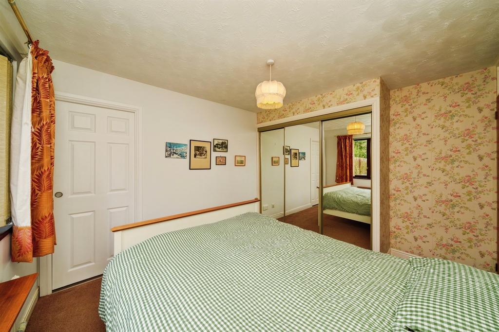 Entering the property into the hallway, the kitchen is on your right, to the front of the property. It's a generously sized space offering ample counter and cupboard space for all your culinary needs, home to the boiler. The living room, also to the front, is a light and airy space perfect to entertain. Heading towards the back, we enter the dining room with a full height pitched ceiling feature, adding to the character of the property. Sliding patio doors lead to the side access and towards the detached garage. Past the dining room another hallway connects the three bedrooms and the family bathroom, a contemporary space, recently renovated, with a shower over the bath. The two double bedrooms boast fitted wardrobes equipped with mirrored sliding doors. The third bedroom is a substantially sized single. Off the main bedroom is a wc/ensuite, designed with access into the garden to better protect the carpet.