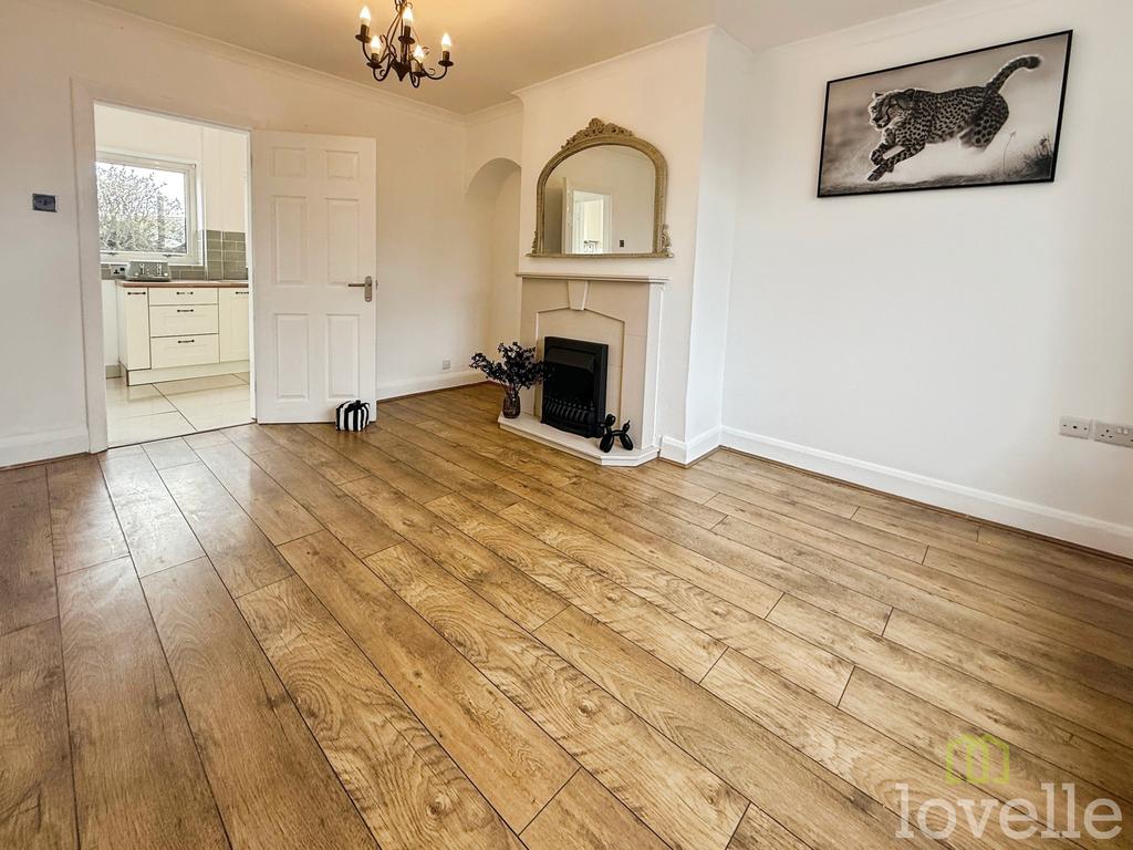 Laminate flooring, electric fire with surround, radiator, window to front aspect and door to kitchen.