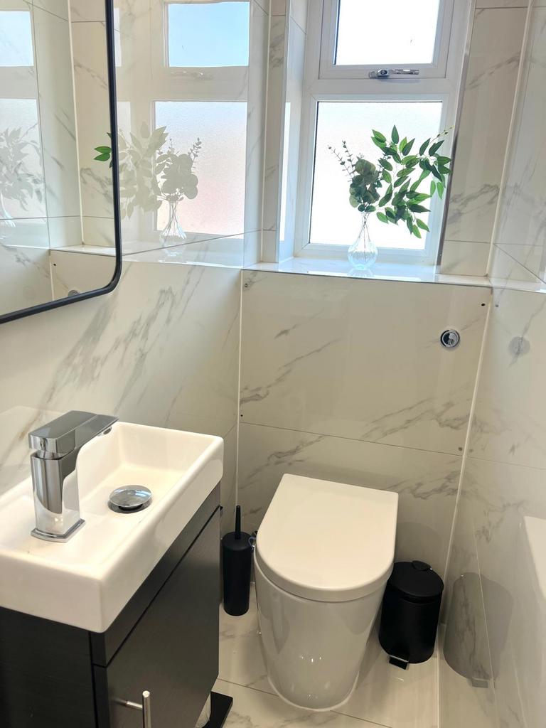 To the rear, the property benefits from a low-maintenance garden, finished partly with marble tiling and partly with artificial grass, offering a neat and usable outdoor space.