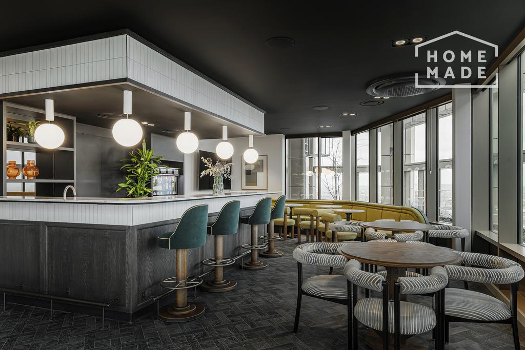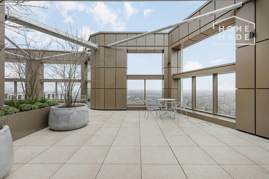 Sky lounge and landscaped rooftop terrace with panoramic views