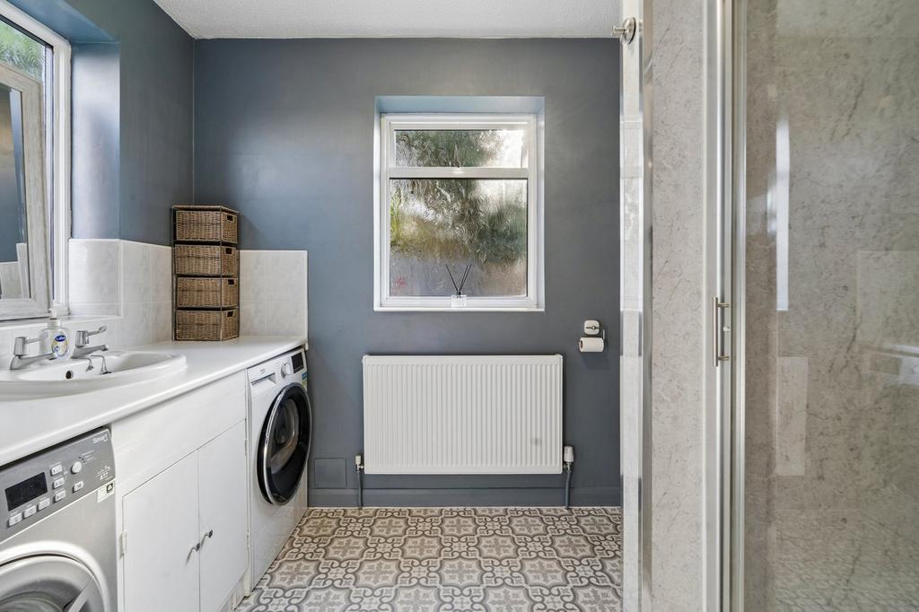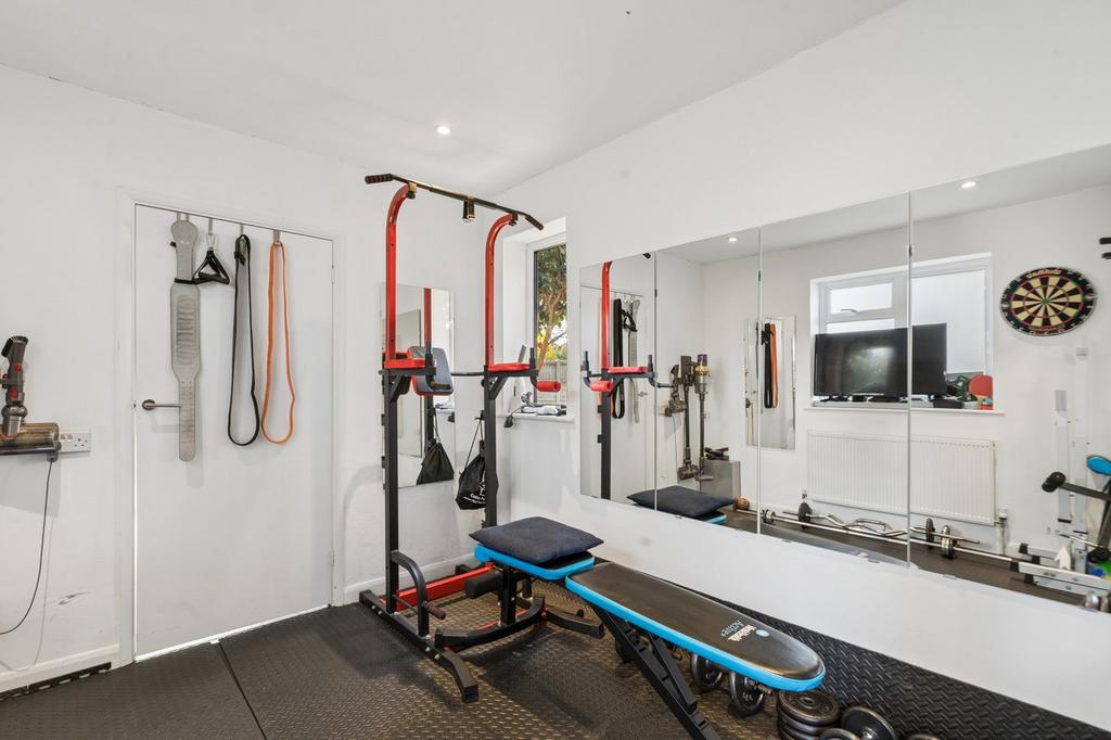 A large and welcoming entry porch sets the tone on arrival, leading into a bright and spacious hallway. The ground floor boasts a generous open-plan living/dining room, perfectly designed for both relaxing and entertaining, with direct access to the garden, allowing for seamless indoor-outdoor living. The adjoining kitchen is well-proportioned and functional, complementing the flow of the home with internal access to the garage—providing both convenience and additional storage options. In addition to this, a utility/second bathroom is located from the gym, which can also be utilised as a 4th bedroom- ideal for guests or flexible use.