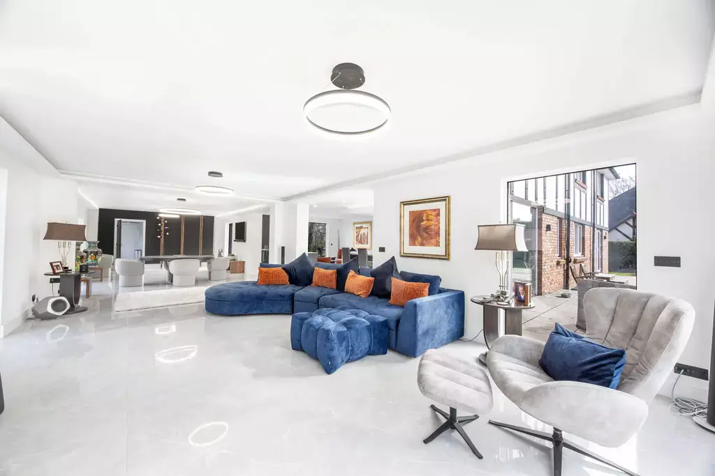 Approached via an imposing pillared and gated entrance, the property immediately sets a tone of prestige, with an extensive driveway leading to the integral double garage. Internally, a grand and welcoming entrance hall introduces a home of both scale and sophistication, thoughtfully designed for modern family living and effortless entertaining.