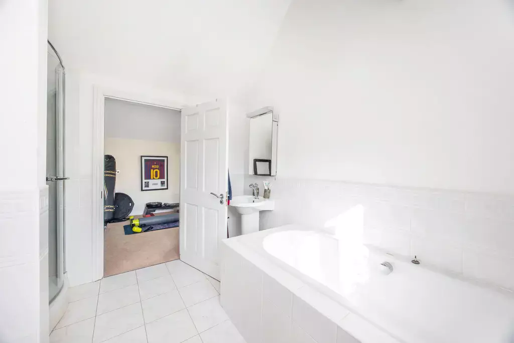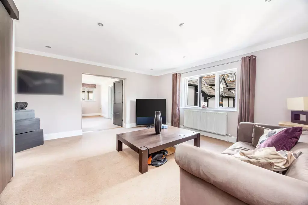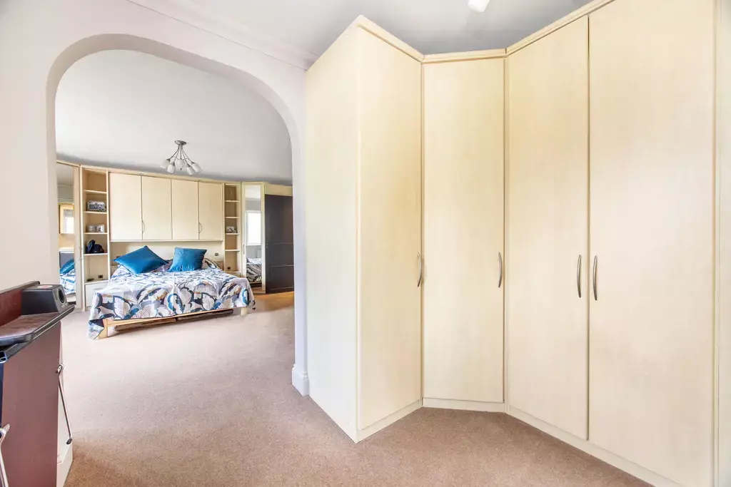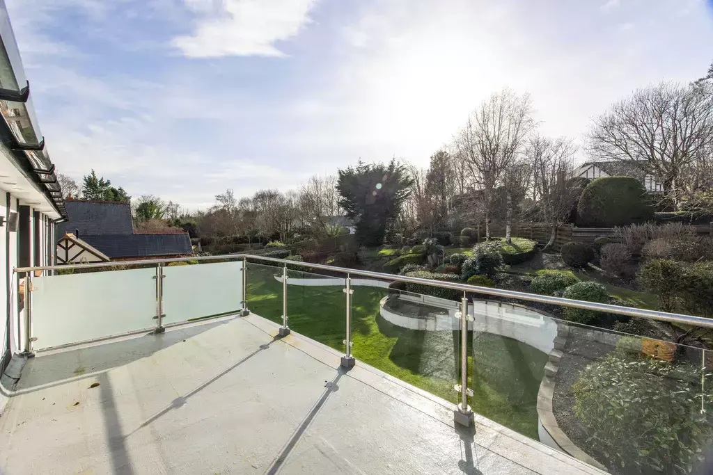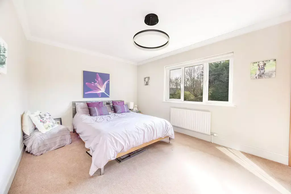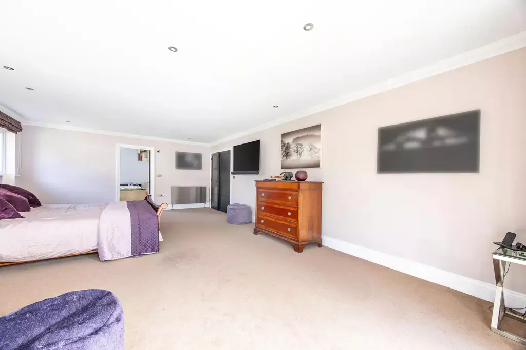 The principal bedroom suite offers a true sense of retreat, featuring a generous bedroom with a private balcony enjoying aspects over the beautiful gardens, a separate sitting room, dressing room, and a luxurious en-suite with a feature vaulted ceiling. Three further double bedrooms are beautifully appointed, supported by an additional dressing room, further en-suite facilities, and a high-specification family bathroom.