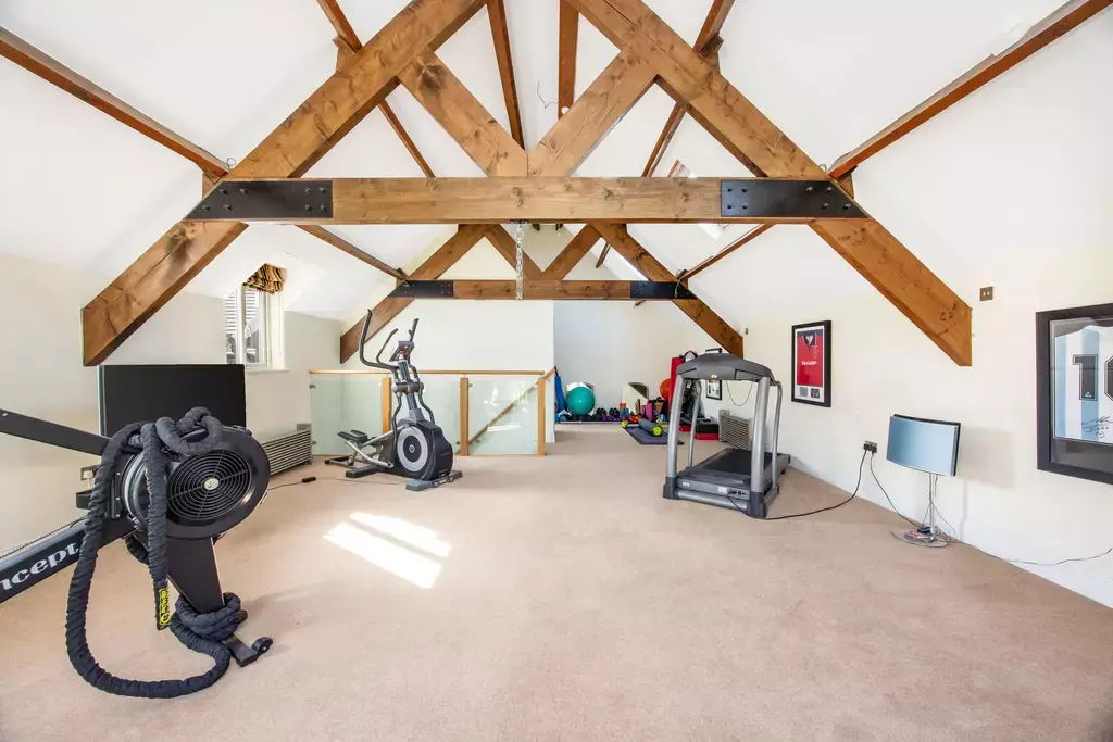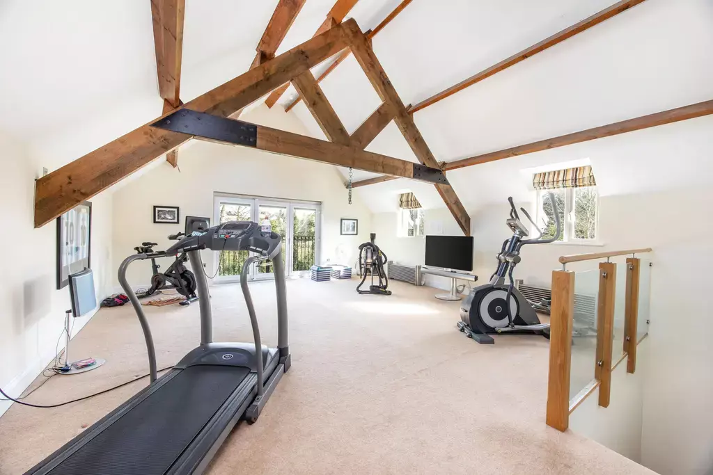A standout feature of the property is the spacious integral annex, ideal for guests or teenagers, complete with its own sitting area, bedroom space, and en-suite - if desired, there is space and potential to add a kitchen to the annex area. Currently utilised as a gym, this versatile area also benefits from a Juliet balcony overlooking the peaceful natural backdrop.