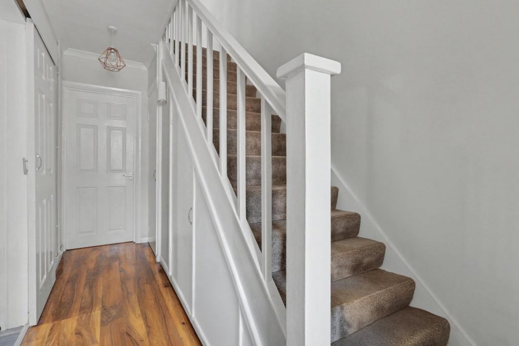 A spacious reception hall with stairs rising to the first floor accommodation. Under stairs storage. Doors lead to :