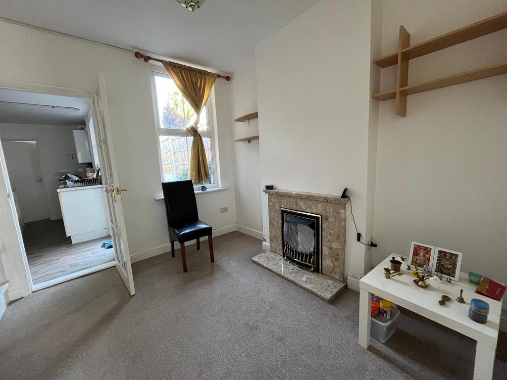 This sunny second reception can be used as a dining room with a door leading to the kitchen. Has an open fire place and a rear-facing window with views of the garden.
