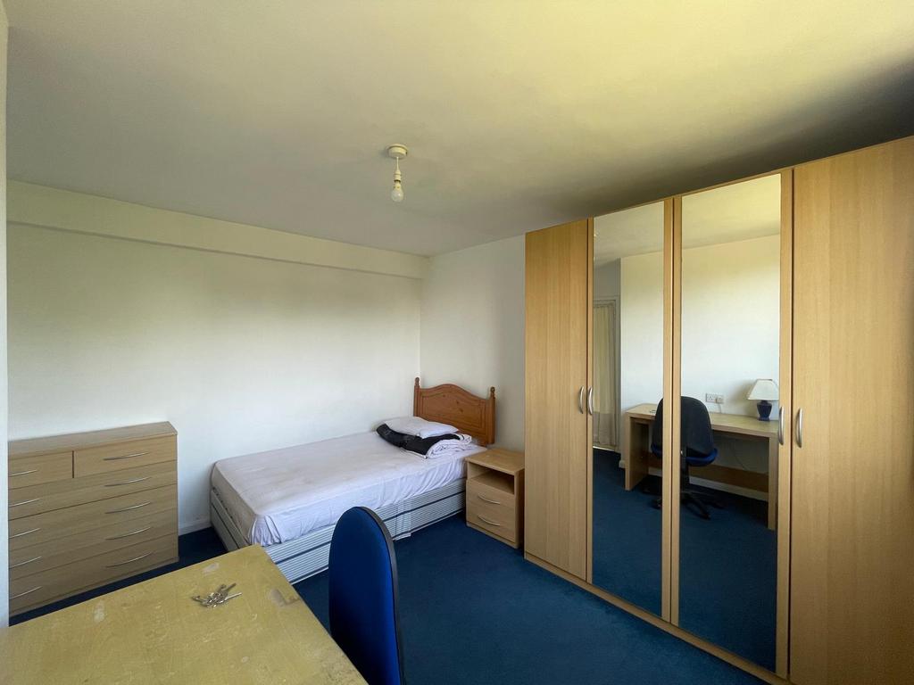 A spacious double room with private en-suite bathroom is available to rent on Wood Lane, Isleworth. The room is ideal for single occupancy and comes with built-in wardrobes, drawers, a desk, and carpeted flooring, providing a comfortable and practical living space. The kitchen is shared with three other tenants and all bills are included in the rent, making it a hassle-free option.