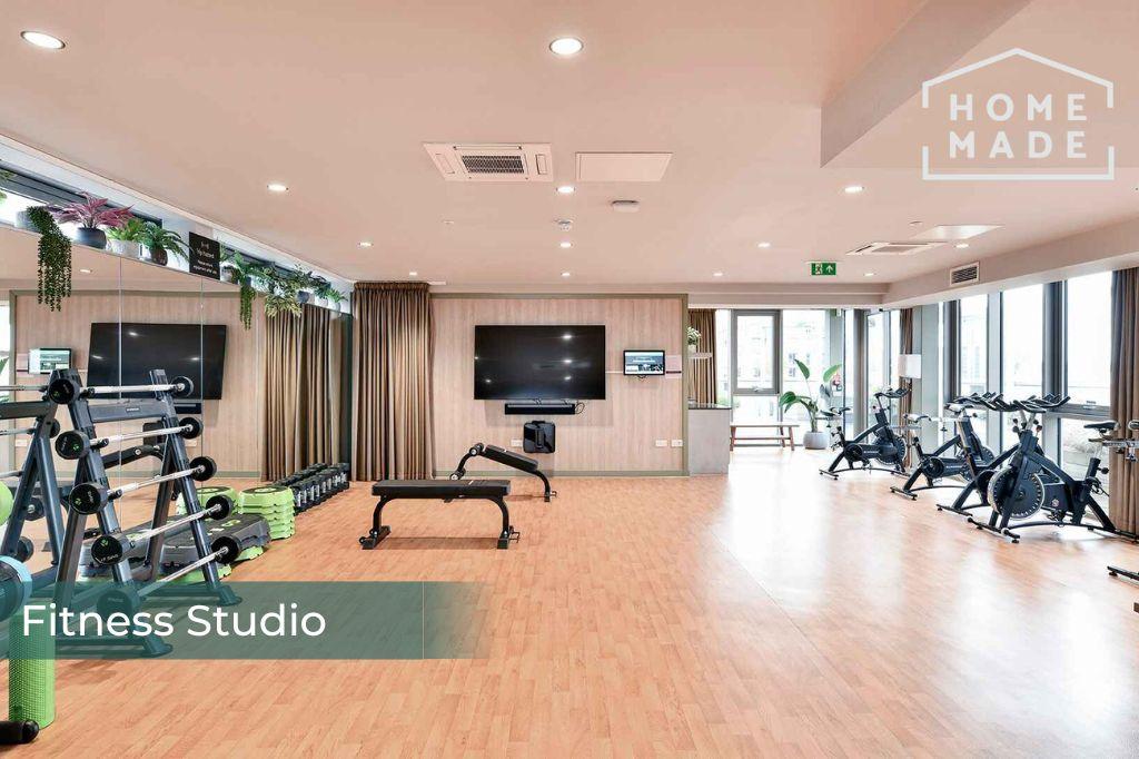 - Fitness Studio with exercise bikes and yoga matts.