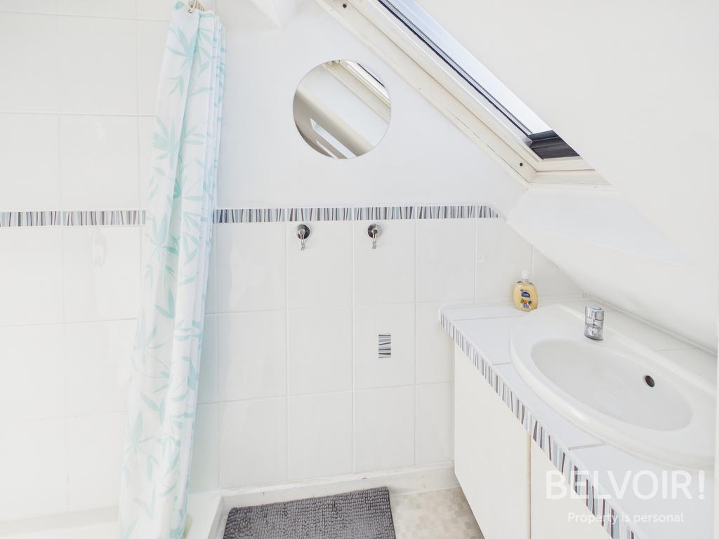 Ensuite Shower Room: With wash hand basin and vanity storage under, shower cubicle, skylight window