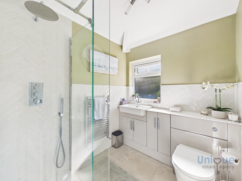 Exceptional kitchen that was fitted two years ago with a wide range of base and wall mounted units, Bosch double oven, induction hob with extractor fan over, integrated fridge freezer and dishwasher. This room also boasts space for a dining table creating the perfect place to host guests.
