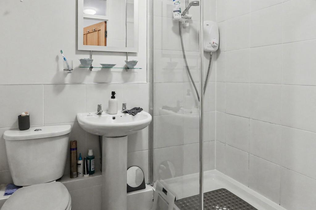 Shower room: Refitted three piece white suite, comprising low level WC, wash hand basin, large double shower cubicle with electric shower over. Extractor fan. Heated towel rail. Tiled flooring.