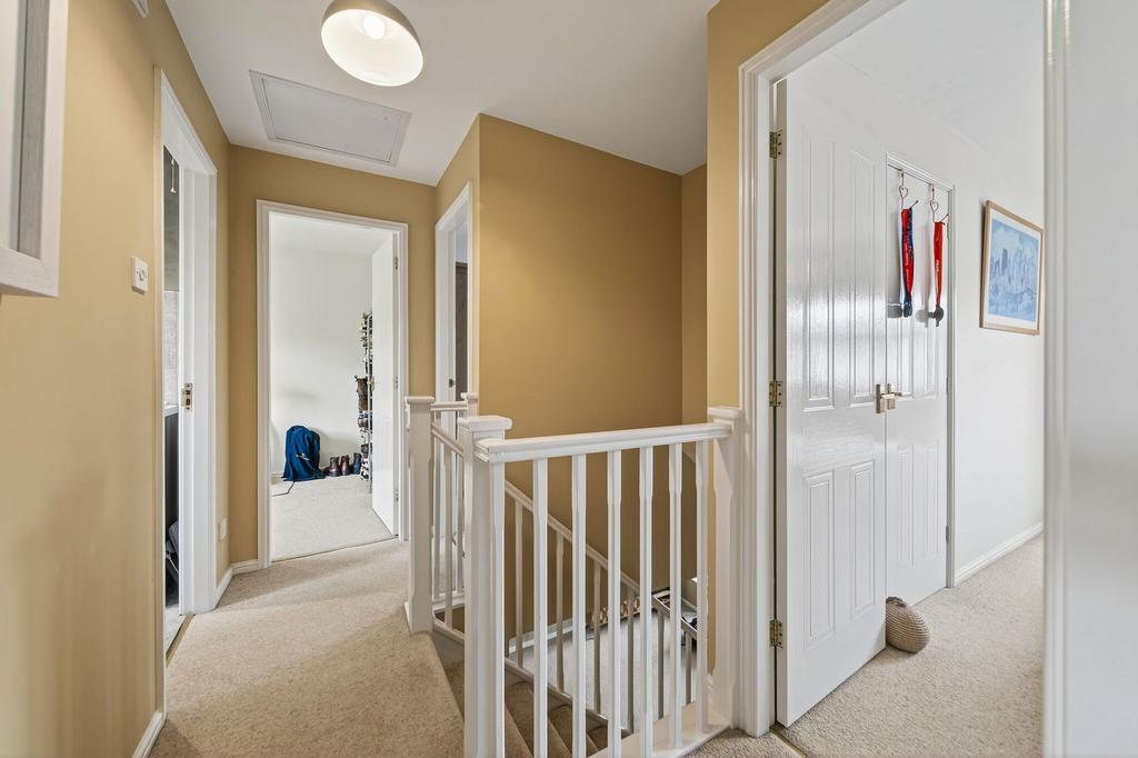 Stairs rise to the first-floor landing with a hatch to the attic which benefits from partial boarding for storage and a light.