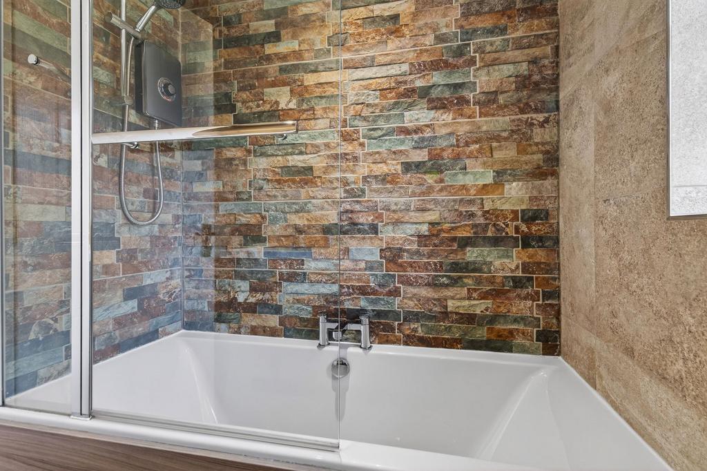 The stylish family bathrooms boast attractive tiling and comprise a panel enclosed bath with an electric shower over and glass shower screen, a vanity enclosed wash hand basin and a low-level WC.