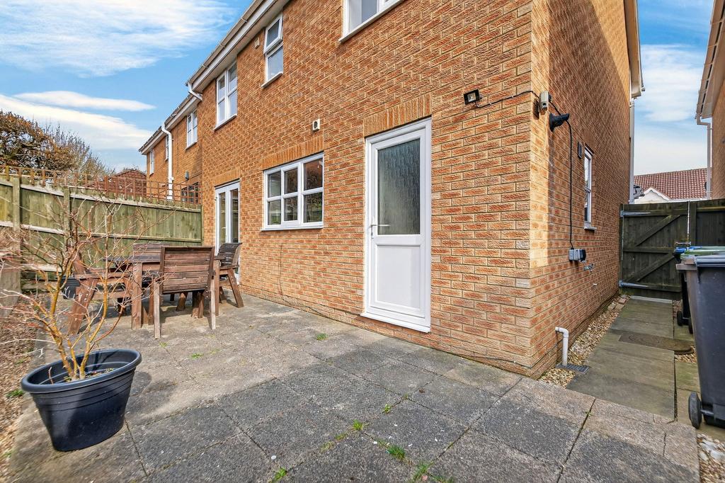 The property boasts a neat and attractive frontage featuring a well-kept lawn, hedgerow and a paving stone patio. There is a driveway providing side by side parking for two cars, access to the garage, a canopy over the front door and a side pathway to the rear garden.