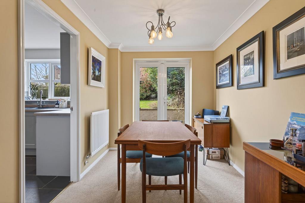 The dining room enjoys French doors opening out to the rear garden, ample space for a dining table and chairs and a door into the kitchen.
