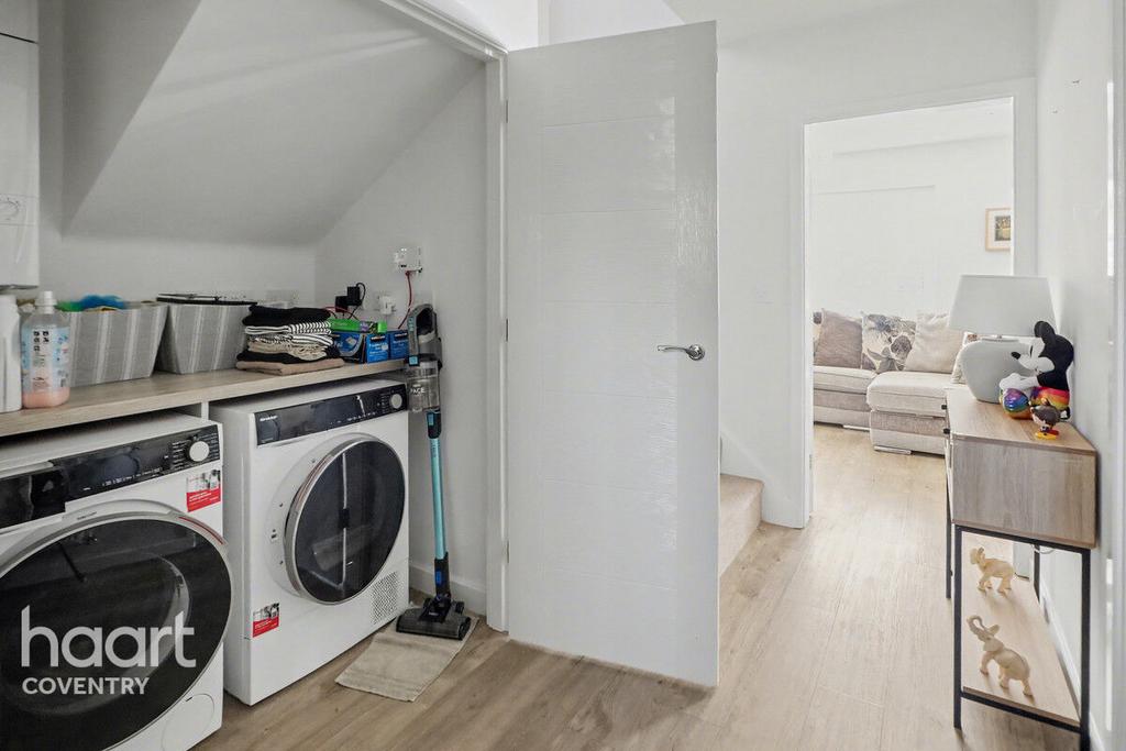 Entered via a double glazed composite door, LVT flooring, stairs to first floor, Utility cupboard with laminate work surface and under counter space for washing machine and tumble drier and wall mounted boiler. Doors to further accommodation.