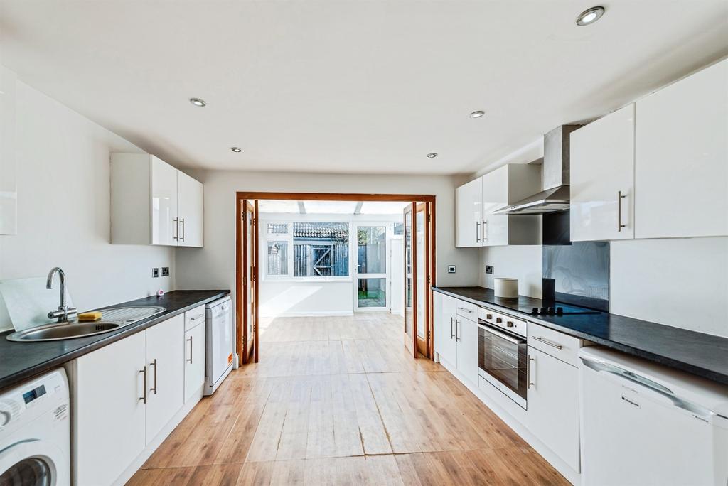 The ground floor features a bright lounge positioned at the front of the home, leading through to a modern kitchen with ample worktop and storage space. To the rear, a spacious conservatory/dining area enhances the living space further, offering an attractive place to entertain or unwind, with direct access to the rear garden.