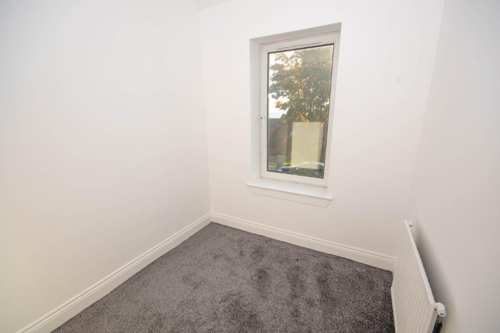 Property is a first storey self-contained purpose-built flat on Wellesley Road, Methil. Property is accessed at rear, around the gable end of the building, up a communal concrete staircase and concrete landing leading to front door of property. Benefitting from communal detached drying green. Very close to all local amenities - shops, schools, churches and recreational spaces. Entry to the property is through the kitchen, and comprises - modern fitted kitchen leading into generously-sized lounge overlooking the rear of the property; four-piece white porcelain bathroom suite containing low-level WC, pedestal hand wash-basin, corner curved bath tub, and dedicated corner shower cubicle; generously-sized master double bedroom to the front, and a smaller single bedroom also to the front. Hallway leads from lounge to bedrooms and bathroom.”