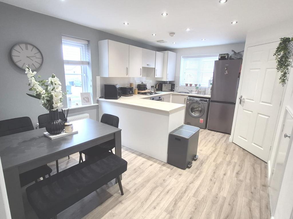 A delightful & modern style kitchen/dining space, which is presented with a range of wall and base units with co-ordinating work surfaces housing the inset sink and drainer unit and the electric oven and a gas hob with the cooker hood above. Having plumbing for a washing machine & space for a fridge/freezer. There is also a central heating radiator, a wall mounted combi boiler housed by wall units, two UPVC double glazed windows and a useful storage cupboard.